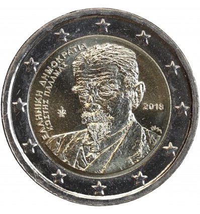 Pièce de 2 euros commérative Grèce 2018 commémorant le 75ème anniversaire de la mort de Kostís Palamás, poète grec de tout premier plan, considéré comme le plus important de sa génération. Il fut d'ailleurs proposé pour le Prix Nobel de littérature en 1939. C'est aussi à lui que l'on doit les paroles de l'Hymne olympique, mis en musique par le compositeur Spýros Samáras et créé à l'occasion des premiers Jeux olympiques de l'ère moderne célébrés à Athènes en 1896.