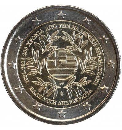 Pièce de 2 euros Grèce 2021 qui commémore les 200 ans de la Révolution Grecque.