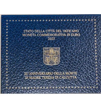Pièce de 2 euros Vatican millésime 2022 dans son coffret officiel commémorant le 25ème anniversaire de la mort de Mère Teresa.