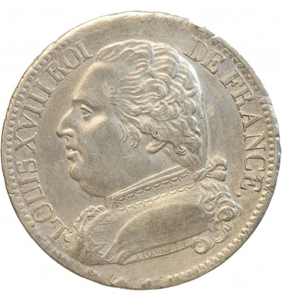 Avers : buste habillé de Louis XVIII à gauche, les cheveux noués par un ruban