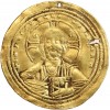 Revers : buste couronné de Constantin IX de face, vêtu du loros, tenant une longue croix de la main droite et le globe crucigère de la gauche